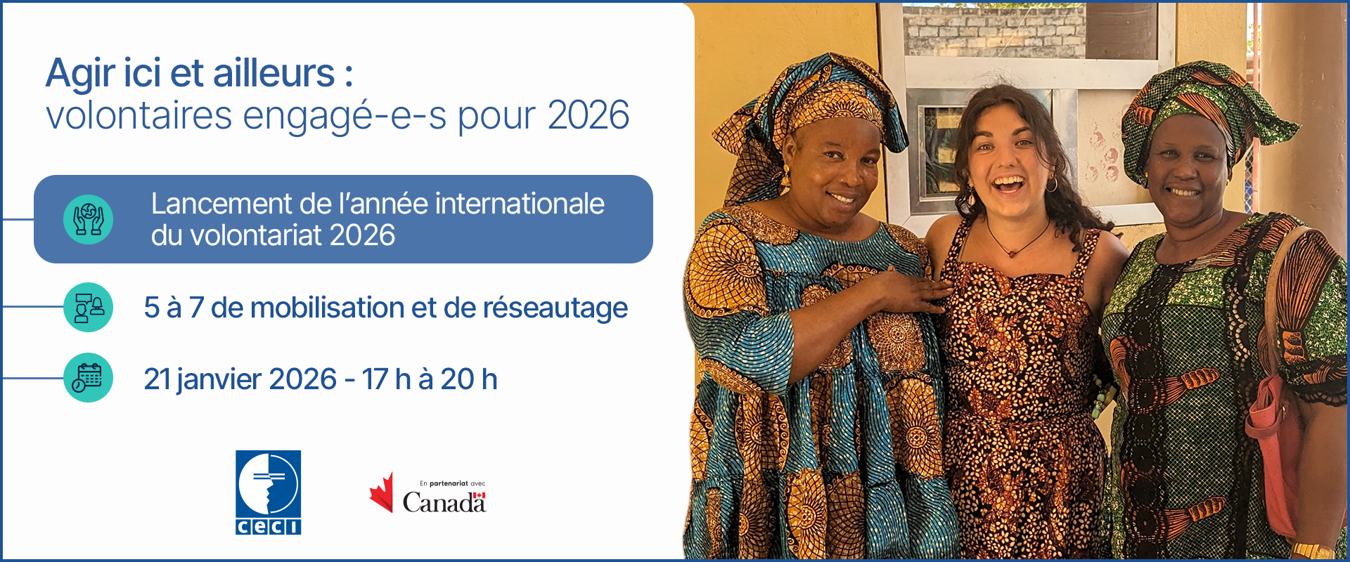 À l’occasion du lancement de l’Année internationale du volontariat 2026, le CECI organise un 5 à 7 festif et participatif visant à rassembler les volontaires, les partenaires et les personnes intéressées par le volontariat, afin de célébrer l’engagement citoyen et d’amorcer une année placée sous le signe de l’action collective.