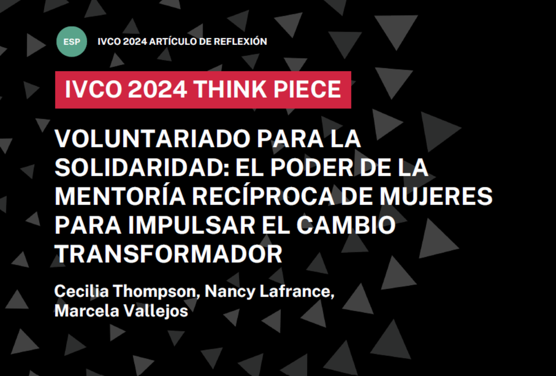 Para citar este artículo de reflexión: Thompson, C.; Lafrance, N.; Vallejos, M. (2024). Voluntariado para la Solidaridad: El Poder de la Mentoría Recíproca de Mujeres para Impulsar el Cambio Transformador. International Forum for Volunteering in Development (Forum).