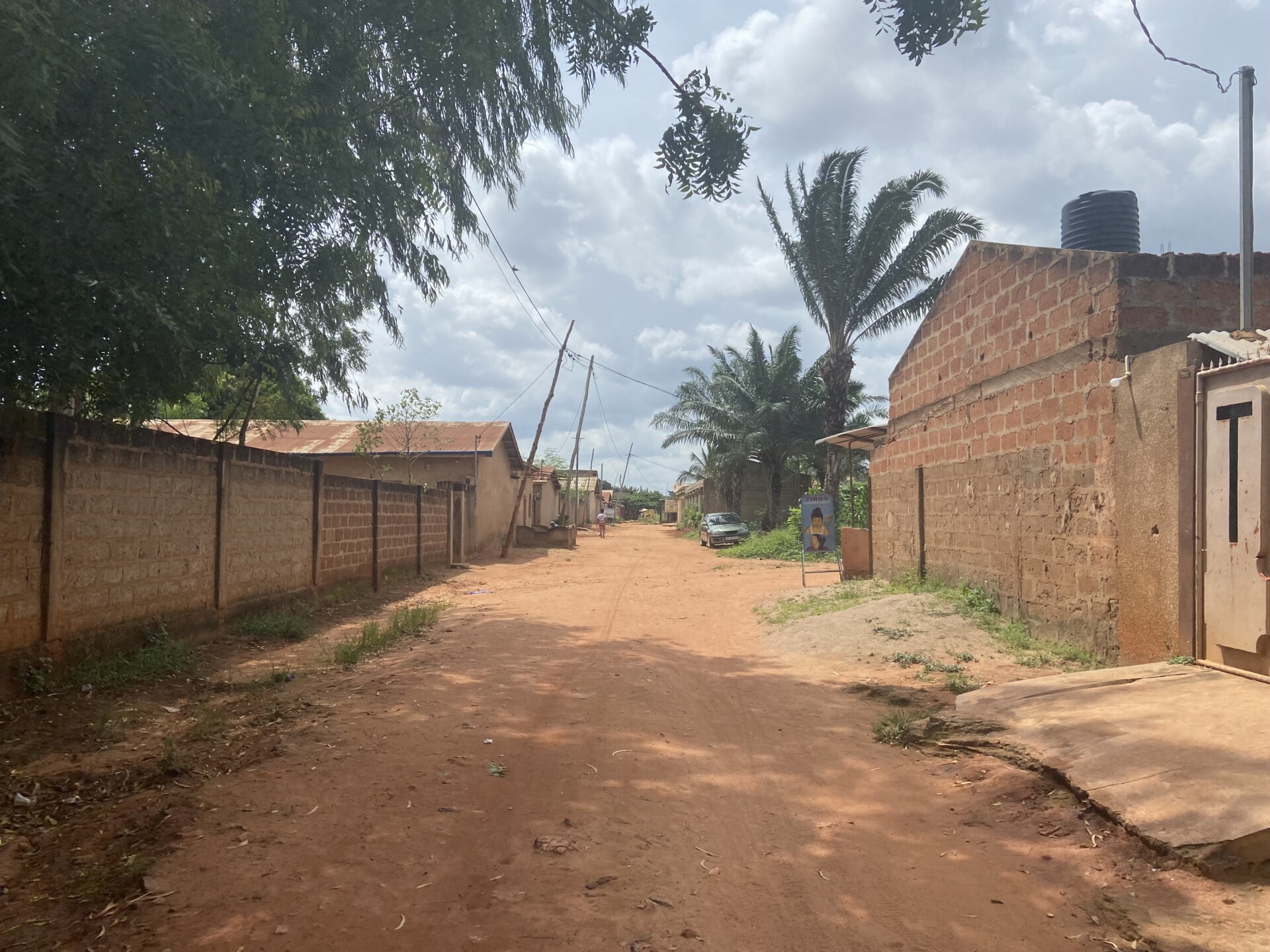 Cette petite marche que je dois faire tous les jours devient rapidement une bulle de joie pour moi. Toujours parée de ma casquette, de mon sac à dos et d’une grande bouteille d’eau, j’avance dans le sol inégal et sableux aux nuances d’orange brûlée. La couleur est si intense que s’en est irréel. Je salue celles et ceux que je croise, j’observe le ciel, puis les palmiers, les palissades et les toits de fortune, les fils électriques dont les poteaux sont de minces troncs d’arbres, les poules qui courent à vive allure. À chaque fois, je me dis que je suis bien loin des routes pavées, des pelouses coupées et des montagnes de la Montérégie. Et ça me rend heureuse!