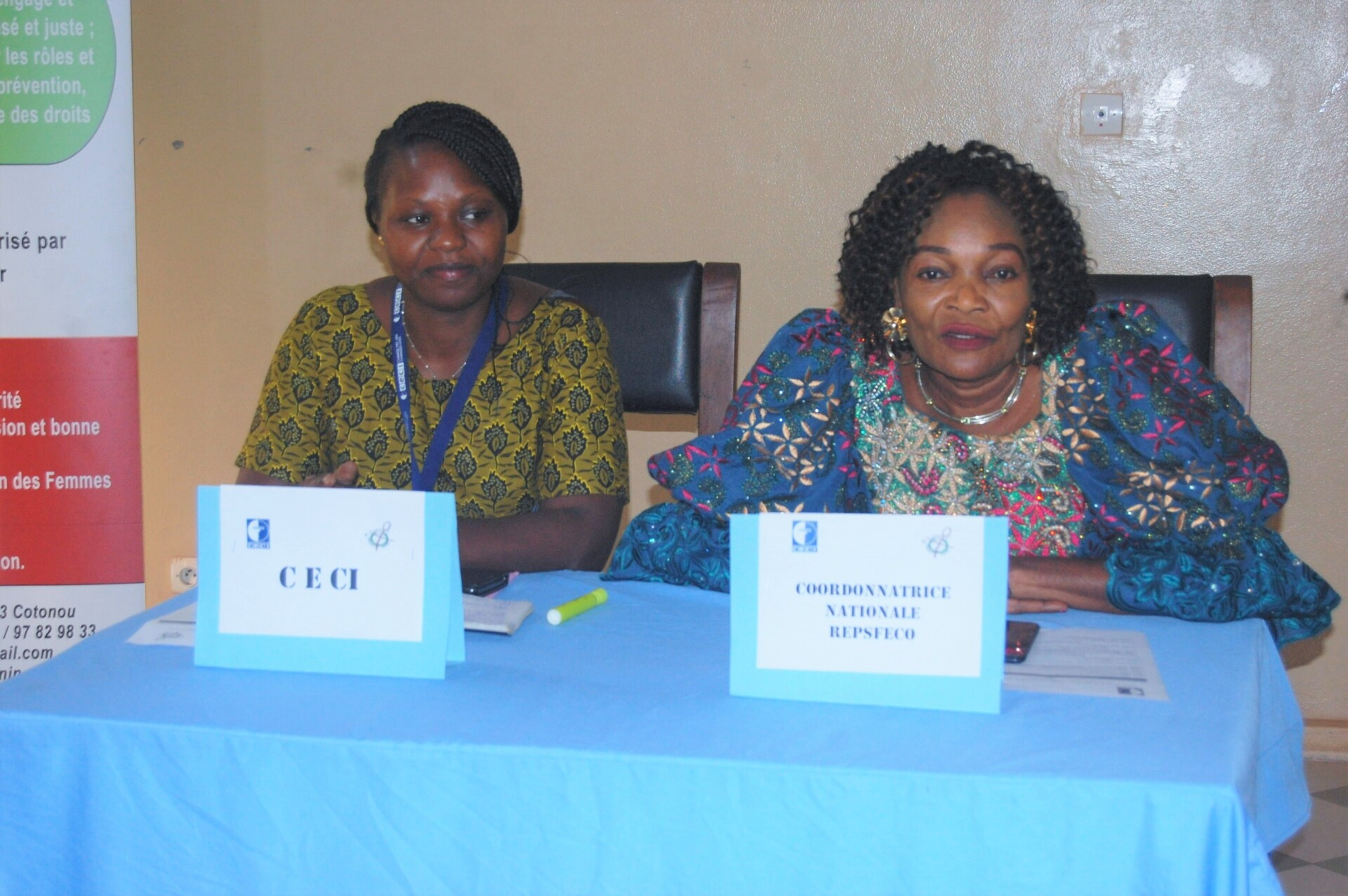 Gauche : Dukuze Marie-Brigitte, Conseillère en suivi, évaluation, apprentissage et redevabilité Droite : Mme Blandine SINTONDJI YAYA, coordonnatrice nationale du REPSFECO Bénin